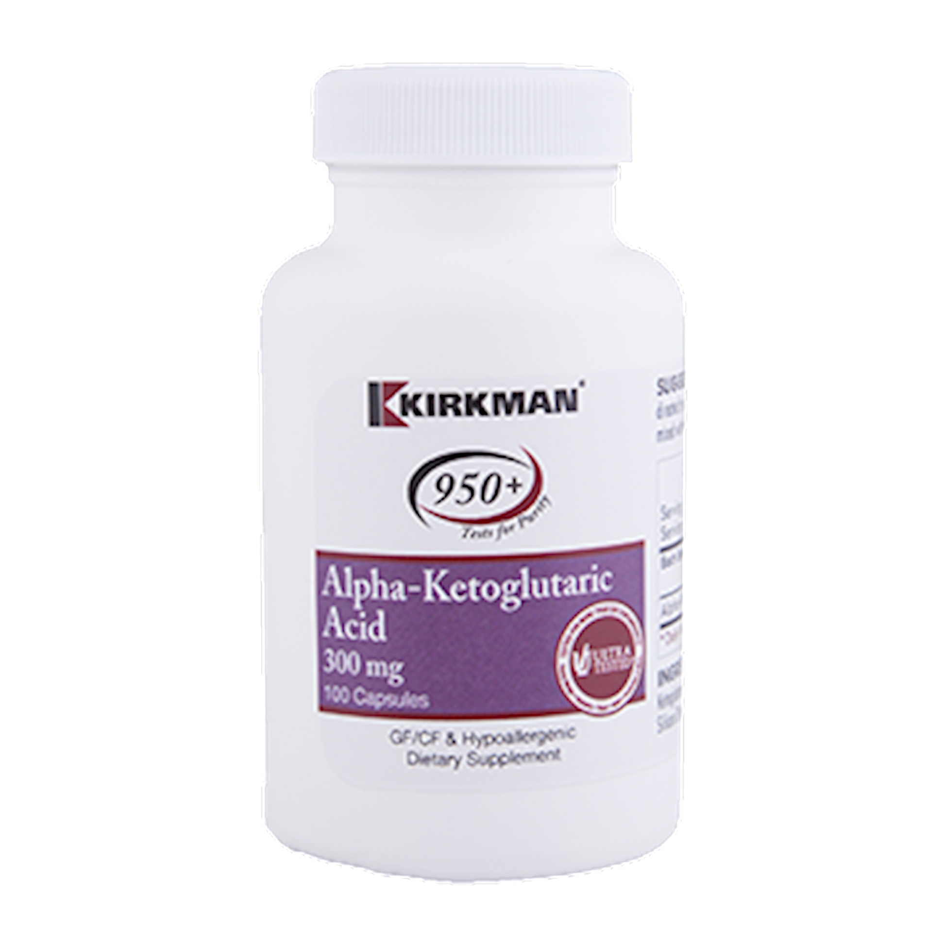 Produces energy in the body and supports the reduction of ammonia levels.* Hypoallergenic. Gluten and casein free. Capsules are plant based. Ultra Tested. Kirkmans Alpha-Ketoglutaric Acid is an organic acid that is important for the metabolism of all essential amino acids and the transfer of cellular energy in the citric acid cycle.* By itself, alpha-ketoglutaric acid is a strong organic acid, and taking it by mouth can upset the stomach or irritate the esophagus. Kirkman has solved this problem by blending alpha-ketoglutaric acid with calcium and magnesium salts to produce a bi-element buffered alpha-ketoglutaric acid that will not produce excess acidity.* This product has a great citrus taste!