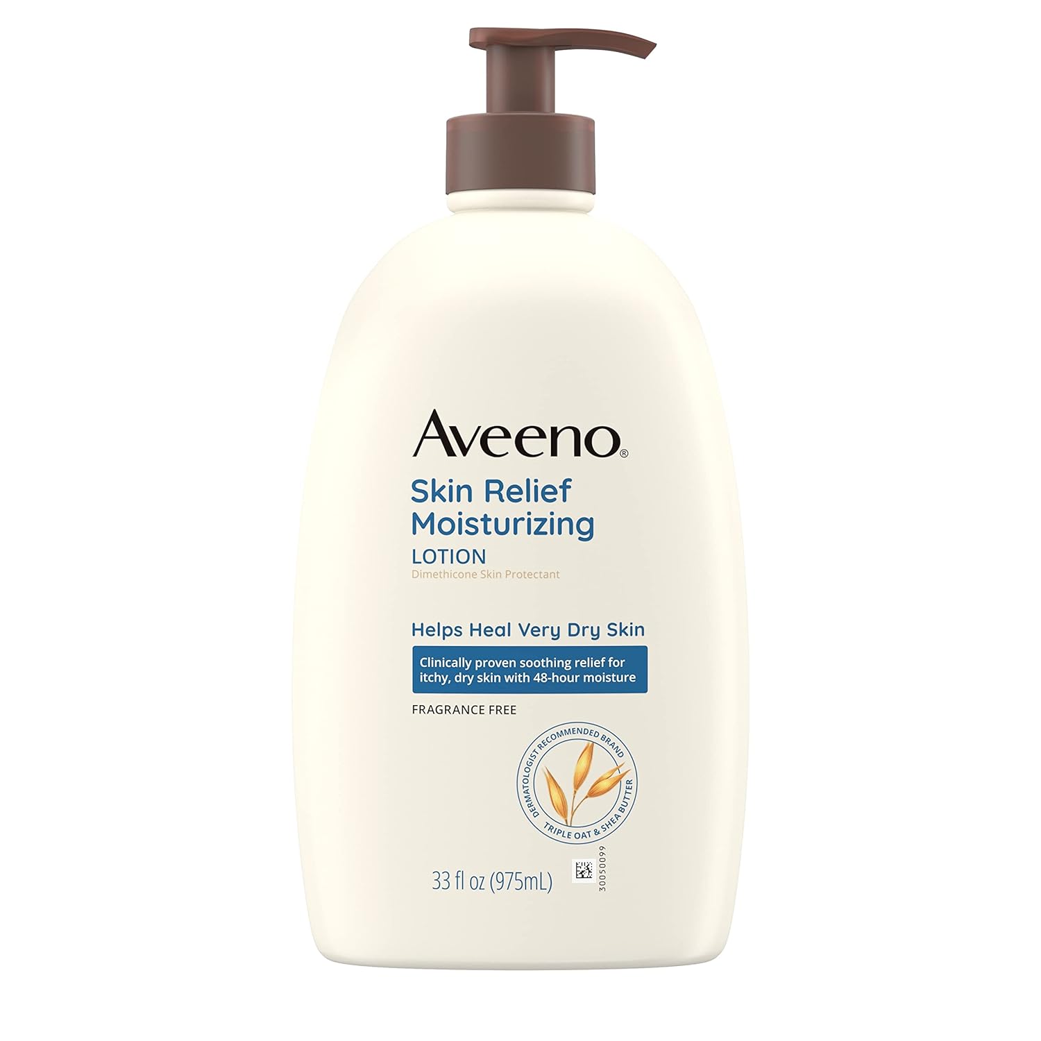 Aveeno Skin Relief 24-Hour Moisturizing Lotion for Sensitive Skin with Natural Shea Butter & Triple Oat Complex, Unscented Therapeutic Lotion for Extra Dry, Itchy Skin, 33 fl. oz(Pack of 1)