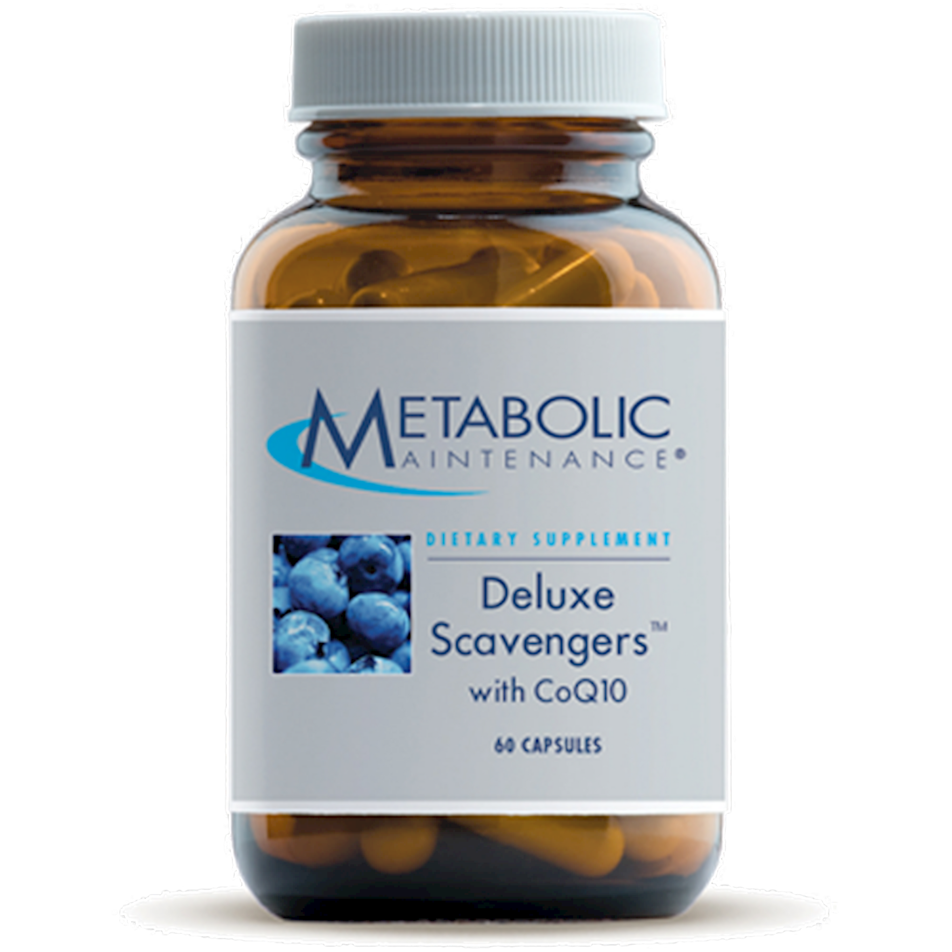 Toxins and pollutants are abundant in our environment. For many, diet alone often cannot provide enough nutritional or antioxidant support for current lifestyles. Deluxe Scavengers provides optimum doses of the essential antioxidants, Vitamins A, C and E as well as CoQ10 a naturally occurring nutrient utilized by cells for protection and energy production. Plant extracts such as Pomella Pomegranate fruit extract, lutein and zeaxanthin provide extra free radical scavenging power. Essential antioxidant vitamins A, C, and E in dosages that complement a daily multivitamin* CoQ10 for cellular protection* Lutein and zeaxanthin for healthy vision and cognition*