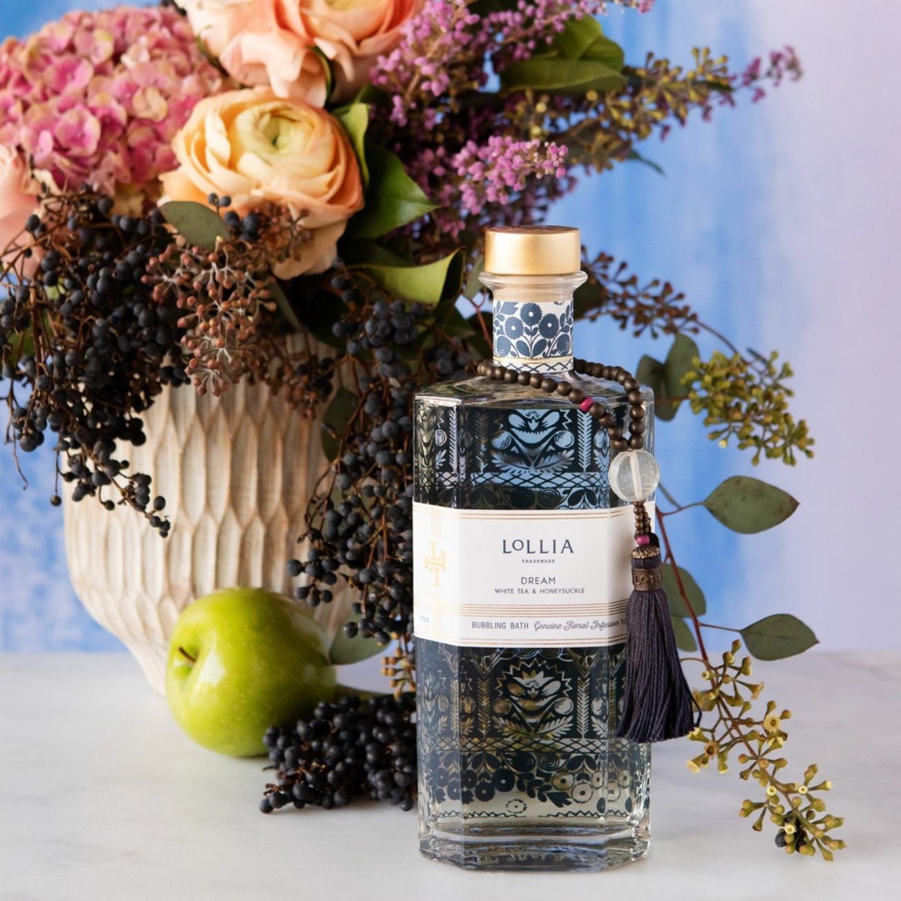 Drift away in luxurious bubbles. A dreamy fragrance combination of Linden, White Tea, Bergamot and Honeysuckle is sweetly familiar, like a pleasant memory while drifting off to sleep. Soft & soothing, Lollia's moisture-rich formulation of Olive Fruit & Avocado Oils leaves skin deliciously refreshed.