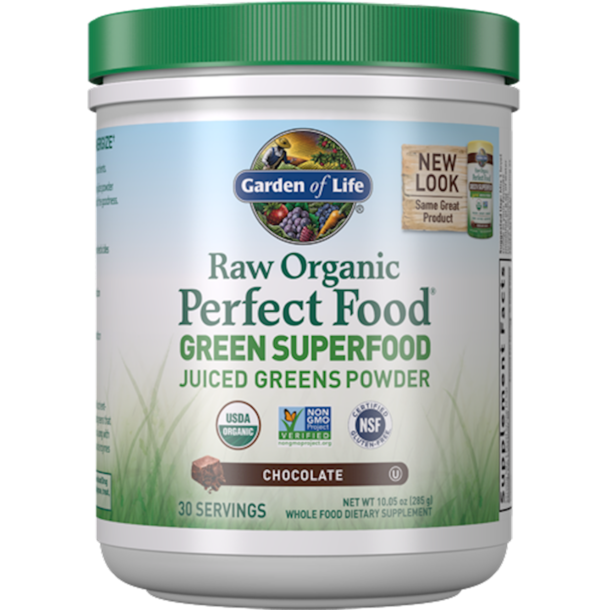 Serving Size: 1 Scoop Servings Per Container: 30 Disclaimer Amount Per Serving Calories 25 Sodium 50 2% Total Carbohydrate 5 g 2% Dietary Fiber 2 g 7% Total Sugars (naturally occurring) 1 g Protein 2 g Vitamin A (as Beta Carotene) 330 mcg 35% Vitamin K 88 mcg 70% Riboflavin 0.16 mg 10% Folate 24 mcg 6% Calcium 38 mg 2% Iron 1 mg 6% Magnesium 19 mg 4% Manganese 0.2 mg 8% Potassium 154 mg Organic U.S.A. Farmed Green Juice Blend: 3.5 g Organic Barley Grass Juice Organic Alfalfa Grass Juice Organic Oat Grass Juice Organic Wheat Grass Juice Organic Kamut Grass Juice Organic Fruit & Veggie Juice Antioxidant Blend: 2.4 g Organic Apple (fruit) Organic Beet (root) Organic Broccoli (stalk & flower) Organic Carrot (root) Organic Spinach (leaf) Organic Tomato (fruit) Organic Strawberry (fruit) Organic Tart Cherry (fruit) Organic Blackberry (fruit) Organic Green Bell Pepper (fruit) Organic Brussels Sprout (leaf) Organic Blueberry (fruit) Organic Ginger (root) Organic Garlic (bulb) Organic Green Onion (bulb) Organic Raspberry (fruit) Organic Parsley (leaf) Organic Cauliflower (flower & stem) Organic Red Cabbage (leaf) Organic Kale (leaf) Organic Cucumber (gourd) Organic Celery (stalk) Organic Asparagus (flower & stem) Organic Sprout Blend: 1 g Organic Flax Meal and Sprout Organic Amaranth Sprout Organic Quinoa Sprout Organic Millet Sprout Organic Buckwheat Sprout Organic Garbanzo Bean Sprout Organic Lentil Sprout Organic Adzuki Bean Sprout Organic Sunflower Seed Sprout Organic Pumpkin Seed Sprout Organic Chia Seed Sprout Organic Sesame Seed Sprout Raw Probiotic & Enzyme Blend: 30 mg Lipase Protease Aspergillopepsin beta-Glucanase Cellulase Bromelain Phytase Lactase Papain Peptidase Pectinase Hemicellulase Xylanase: Lactobacillus acidophilus, Lactobacillus plantarum, Lactobacillus bulgaricus 1.5 Billion CFU Lactobacillus plantarum Other ingredients: Organic cacao, organic chocolate flavor, organic stevia extract (leaf), sea salt