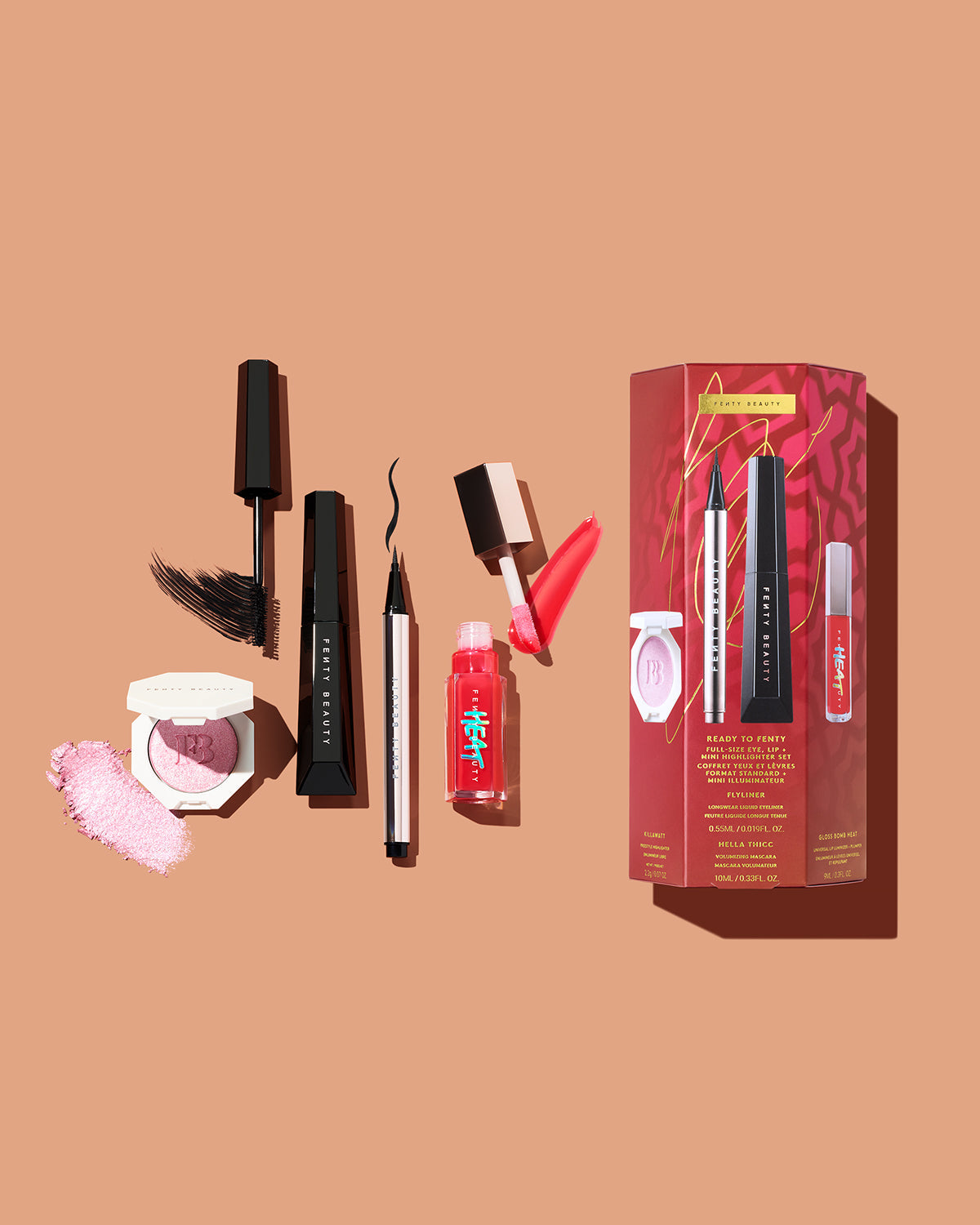 Get yourself Fenty-ready with this exclusive, limited-edition set of fam fave essentials. We got you covered with the ultimate makeup lineup to give ‘em major lashes, ultra-defined eyes, instant plump-effect lips and a showy glow to take your looks to the next level.