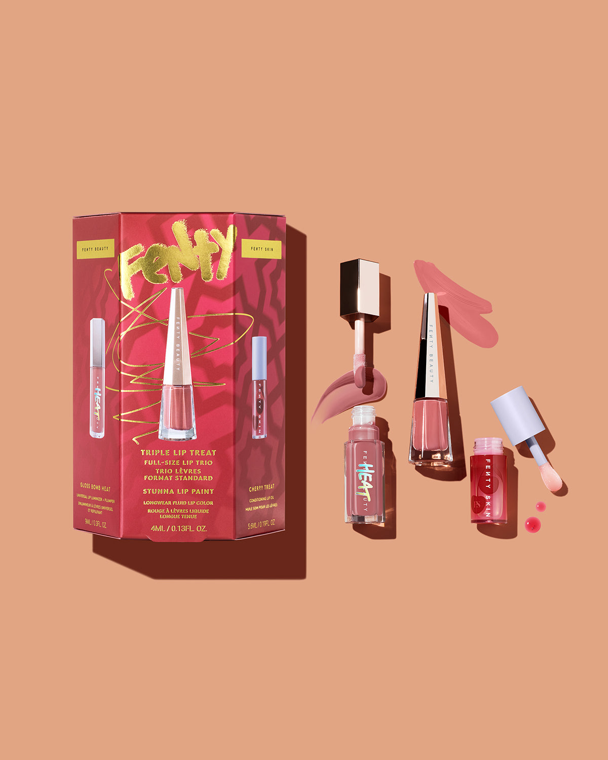 A triple treat of lip essentials is here. Serve up hype-worthy lip looks with this trio of must-haves. From super-pigmented precision lip paint, to a plump-effect luminizer with a hint-of-tint, and a sheer, non-sticky lip oil that plays well with others, this limited-edition set is your new go-to for ultimate lip energy.